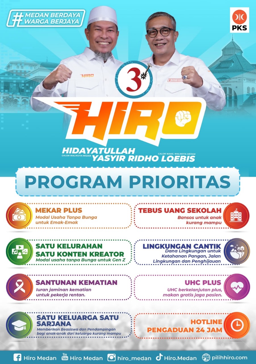 Medan butuh sosok pemimpin yg amanah, jujur dan adil. Sosok ini ada di Hiro, nomor urut 3